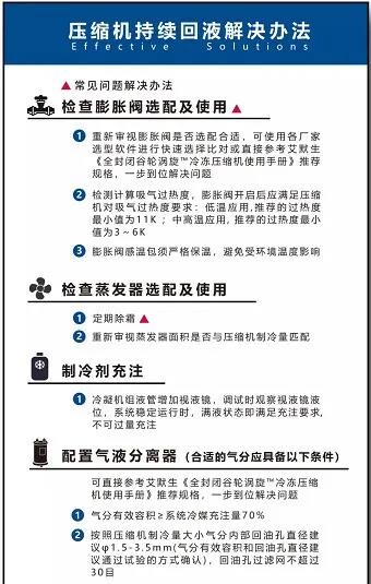 當壓縮機出現了上述癥狀則需立刻進行測查,確認持續回液病癥: